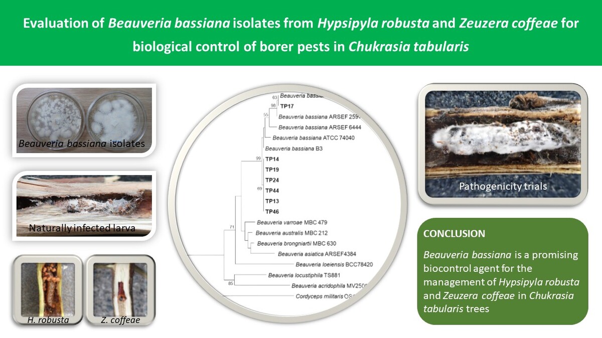 Evaluation of Beauveria bassiana isolates from Hypsipyla robusta and Zeuzera coffeae for biological control of borer pests in Chukrasia tabularis